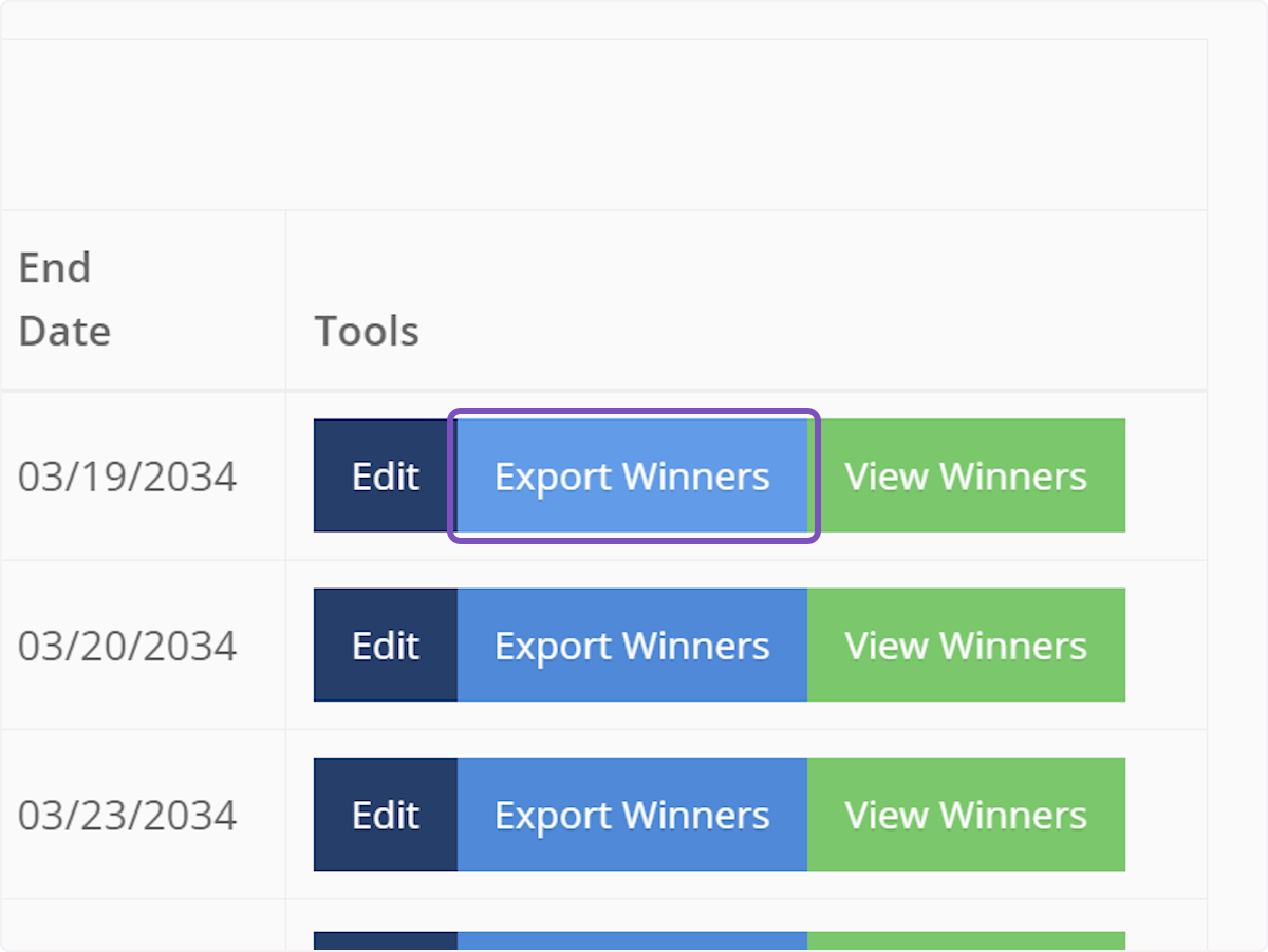 4. Click Export Winners next to the name of the contest