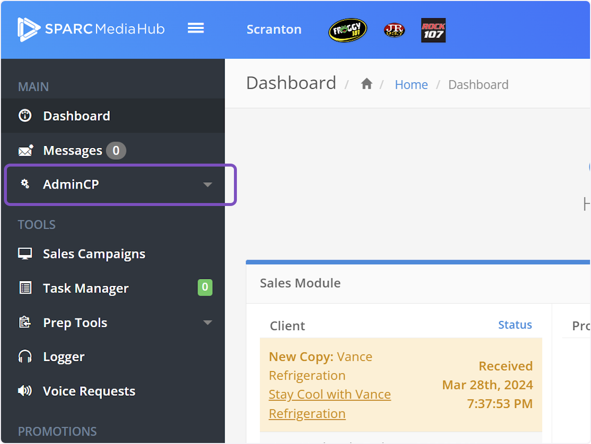 1. Click on AdminCP