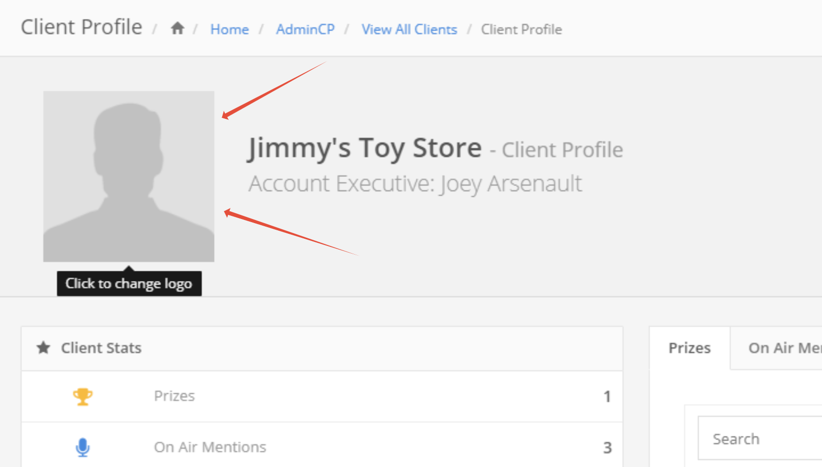 A client's profile picture is used on remote wrap presentations, on client creative preview and on the Client Profile page.