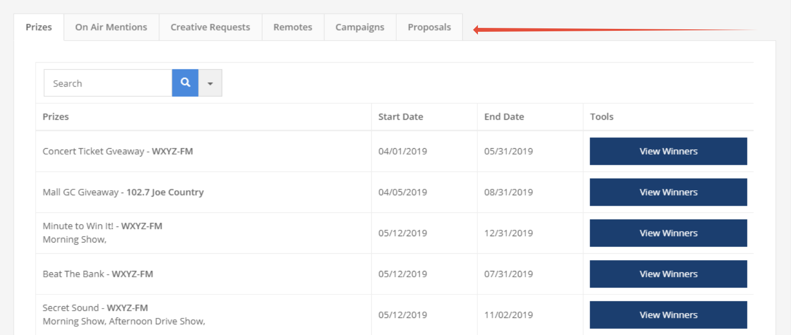 Prizes: All the prizes your client has sponsored. You can search this form to find a specific giveaway. If you'd like to see a full list of the winners of this prize giveaway click View Winners. (If you receive a permission error screen, it mean you don't have permission to view winners.)
