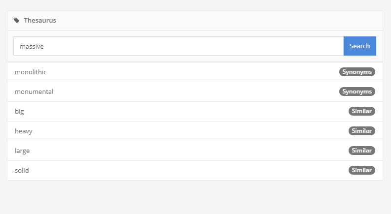 And the final section is the Thesaurus. If your writers are finding their script is repetitive and they just want to quickly find some replacement words, we’re here for them!