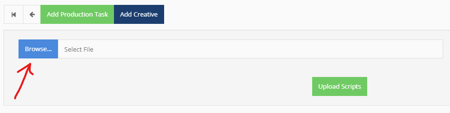 Once you're in the information section of a piece of creative (access this by clicking the client name on the creative dashboard) click "Upload Script" in the top right hand corner.