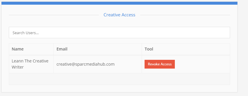 Click the red Revoke Access button next to the user you want to revoke access from under the "Creative Access" section of this screen.