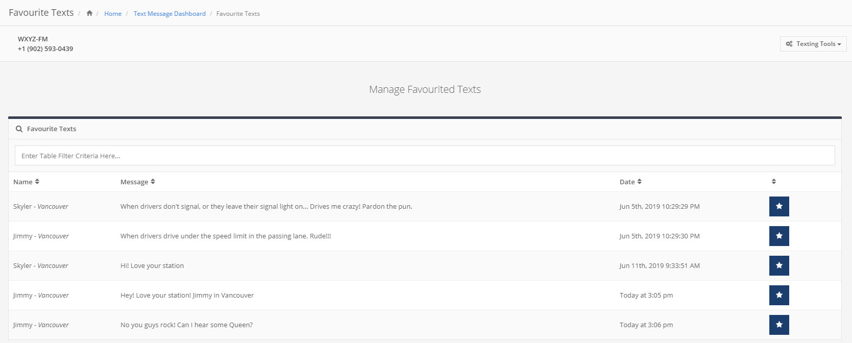 If you have favorited text messages in SPARC Media Hub's texting platform they will show up in your favorites list.