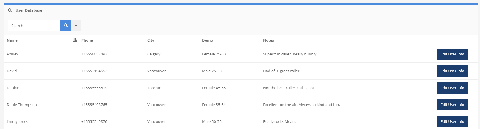 You can also sort by name, phone number, city, demo or notes. Just click the top label of each column.