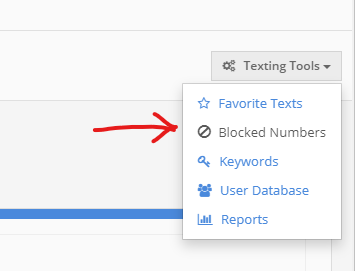 Once in the Texting Platform select the "Texting Tools" dropdown and click "Blocked Numbers"