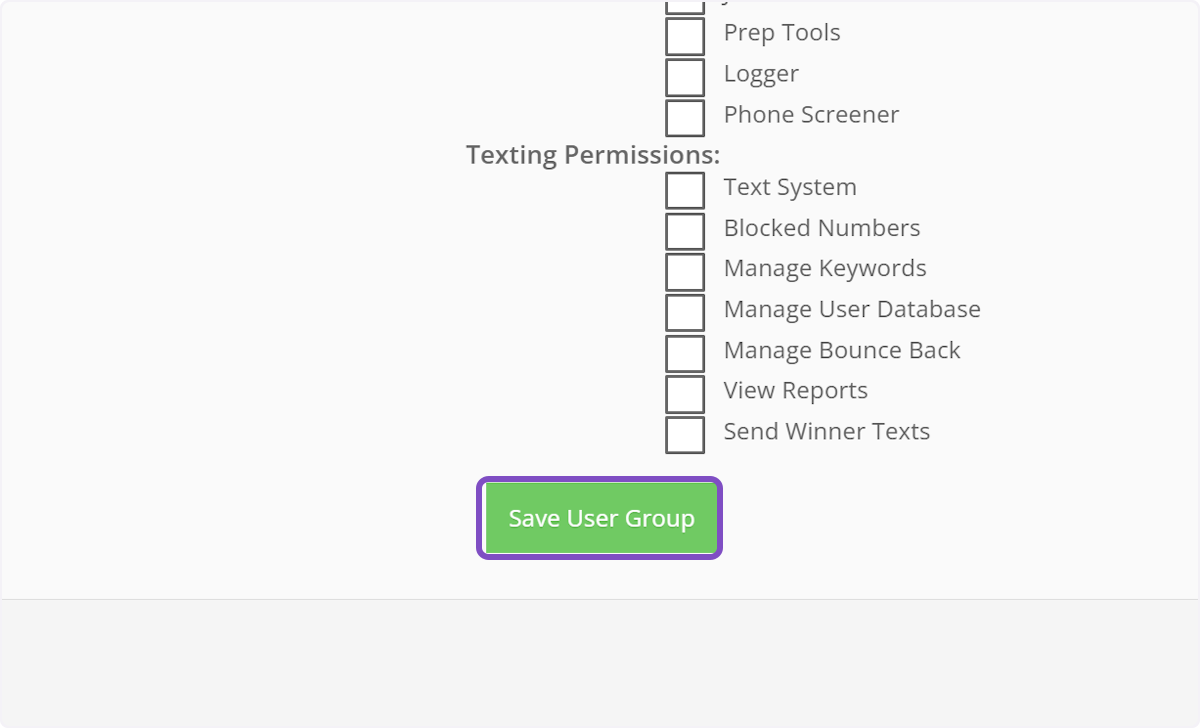 11. When you're done modifying that user group, click on Save User Group at the bottom of the screen.