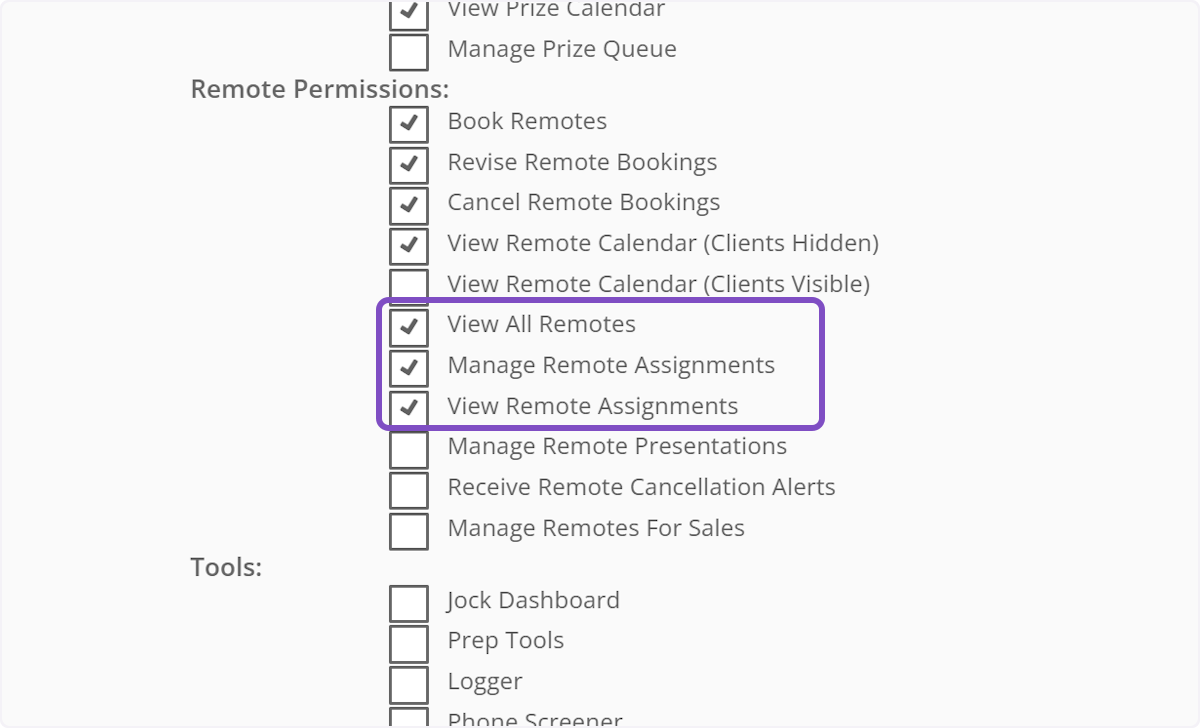 10. You'll need to check off three permissions: "View All Remotes", "Manage Remote Assignments" and "View Remote Assignments."