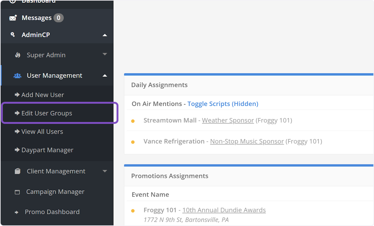 4. Locate the user group, you'd like to modify approvers for campaigns.